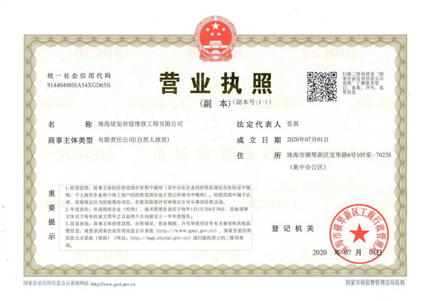 珠海居安房屋維修工程有限公司成立于2020年,是一家專注房屋維修的公司。我們擁有各類型專業(yè)人才,業(yè)務(wù)包括老舊建筑翻新改造、外墻空鼓修復(fù)、防水幕墻養(yǎng)護、外墻預(yù)置構(gòu)件拆除更換、供排水管網(wǎng)改造、墻面翻新、鋼制結(jié)構(gòu)建筑構(gòu)建及折除,外墻清洗及裝修裝飾。